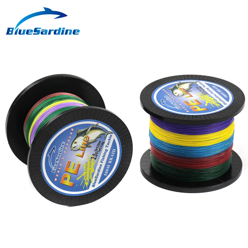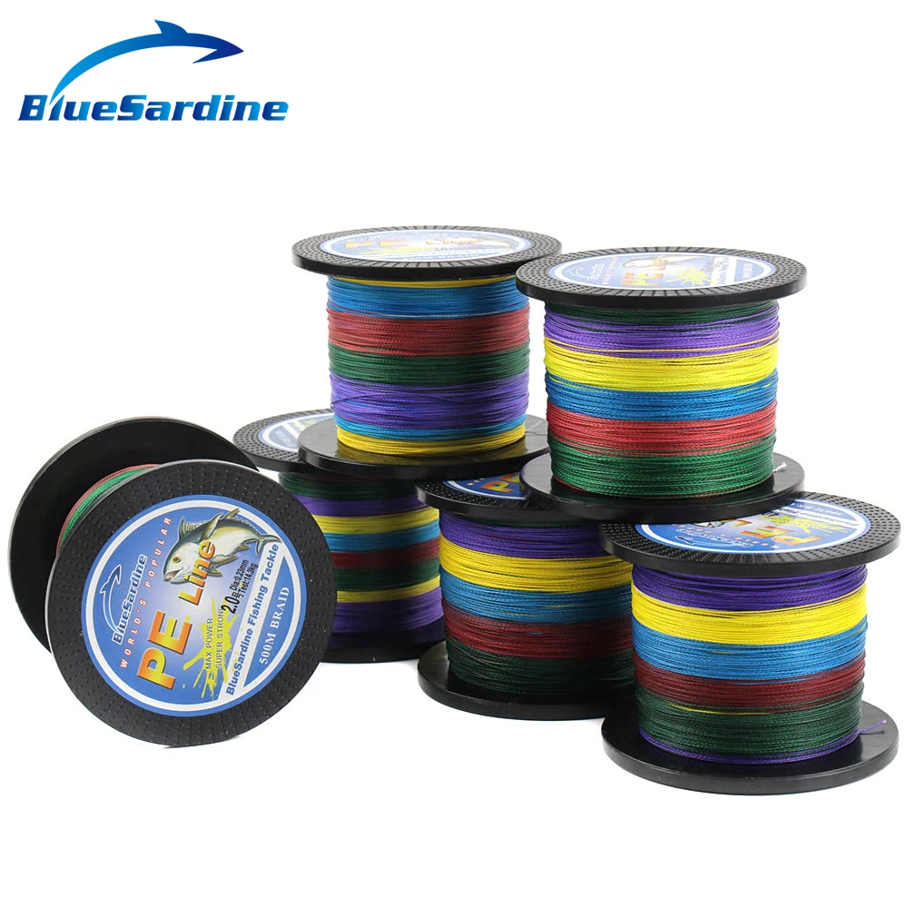 Best BlueSardine Multi Color 500M Braided Fishing Line Super Strong Multifilament PE Braid Line