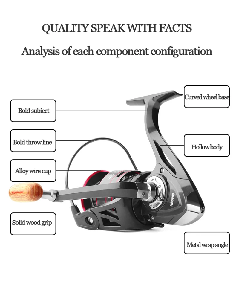 BEST QUALITY Spinning Fishing Reel HB 500-6000 No Gap Metal Spool Reel 8KG Pike Black Red Spinning reel High Spe
