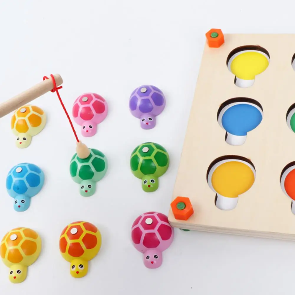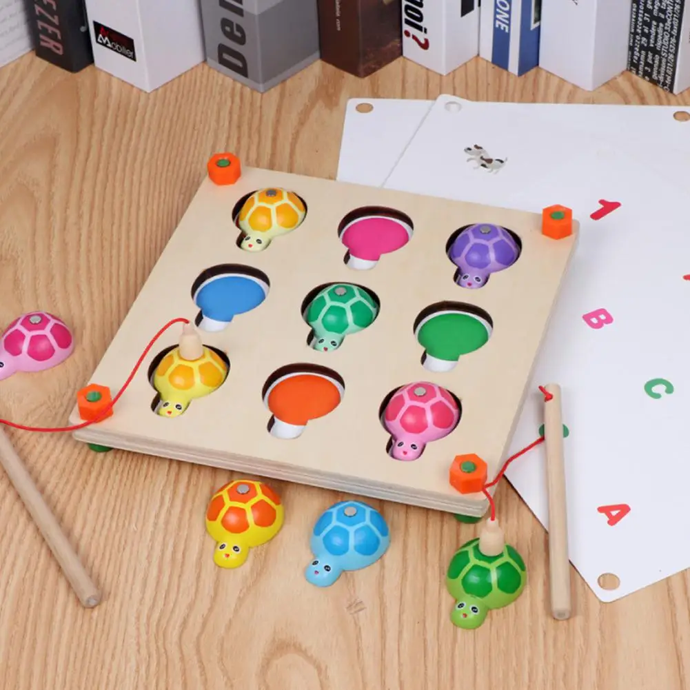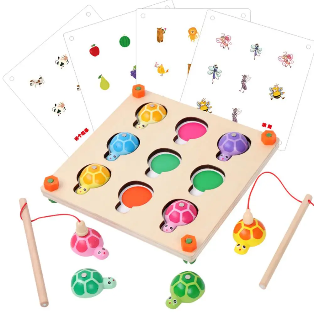 Kuulee Baby Kids Cartoon Fishing Tortoise Memory Game Chess Wooden Educational Toy