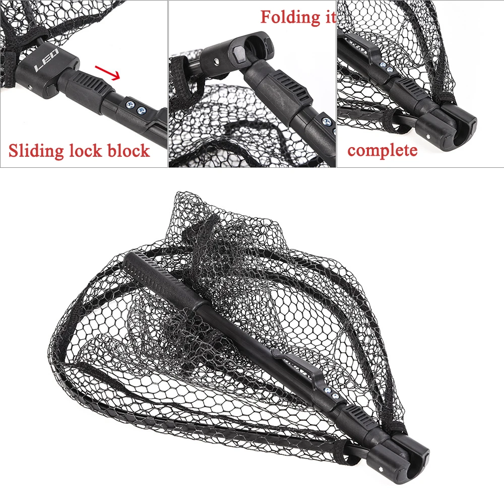 Lawaia Fold Fly Fishing Net Glued Aluminum Alloy Hand Net Fishing Pole Telescopic Nylon Carp Fishin