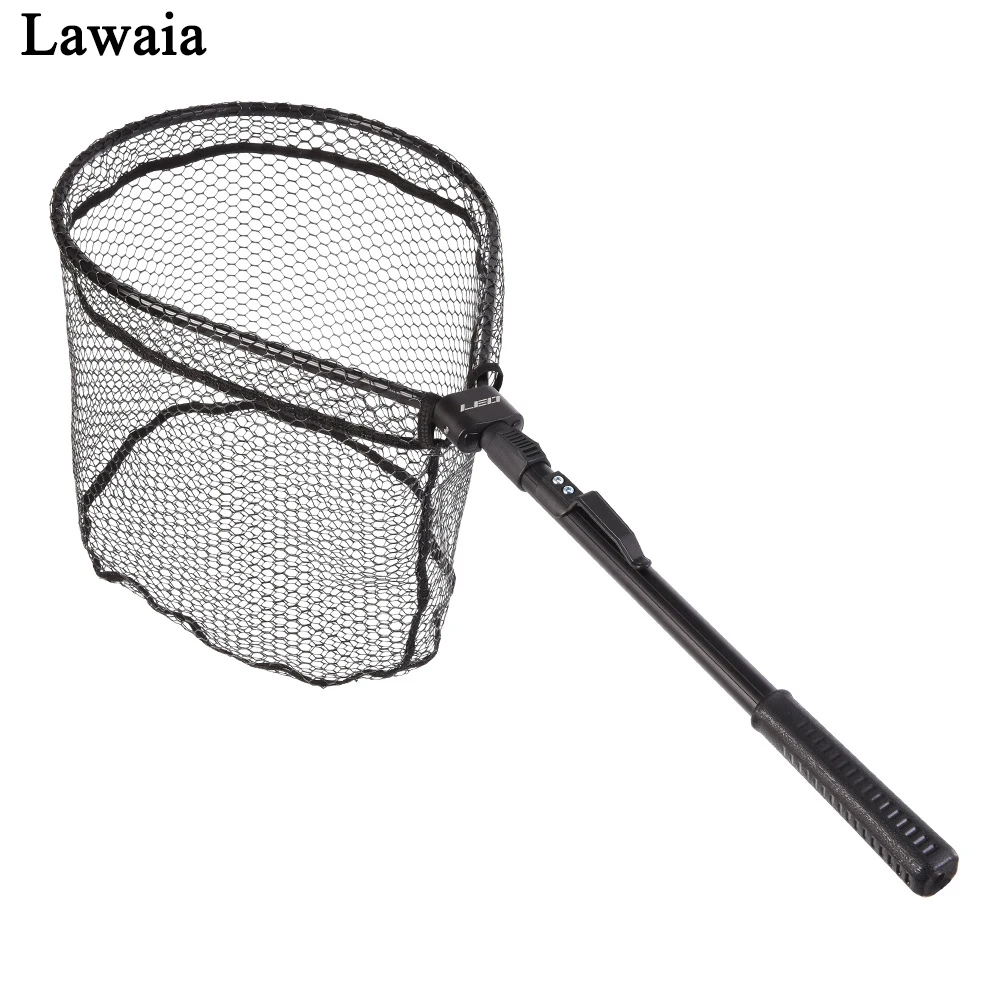BEST QUALITY Lawaia Fold Fly Fishing Net Glued Aluminum Alloy Hand Net Fishing Pole Telescopic Nylon Carp Fishin